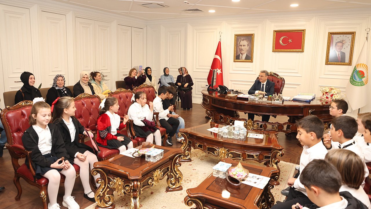 İlkadım Belediyesi’nin 23 Nisan Ulusal Egemenlik ve Çocuk Bayramı’na yönelik düzenlediği özel etkinlikler tüm hızıyla devam ederken, Başkan İhsan Kurnaz, Ulugazi İlkokulu 2-A ve 3-A sınıfı öğrencilerini makamında misafir etti. Ziyaret sırasında başkanlık koltuğunu 3-A sınıfı öğrencisi Elvin Tanem Zengin’e devreden Başkan İhsan Kurnaz, Özel Kalem Müdürlüğü görevini ise yine 3-A sınıfı öğrencisi Burak Emir Şendere’ye verdi.