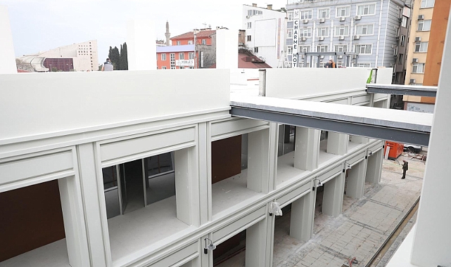 Şehrin tarihine sahip çıkan ve şehrin hafızasında önemli yeri olan lokasyonlarda dikkat çeken projelere imza atan Samsun Büyükşehir Belediyesi, Belediye Ticaret Merkezi projesi ile de Saathane Meydanı’na yepyeni bir soluk kazandırıyor. Kullanım ömrünü tamamladığı için yıkılan 5 katlı hizmet binasının yerine inşa edilen Belediye Ticaret Merkezi Projesi’nde tüm hızıyla süren çalışmalar tamamlanmak üzere. Projeyi yerinde inceleyen Başkan Doğan, tarihi dokuya uygun olarak şehre hizmet verecek bir merkezin hayata geçirileceğini vurguladı.