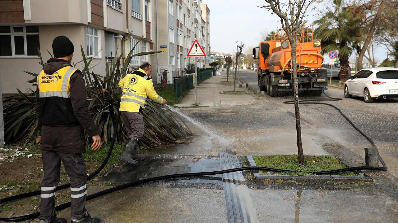 Tüm merkez ilçelerde çalışmalar 7/24 esasıyla gerçekleştiriliyor. İhtiyaç duyulan tüm arterlerde mesai yürüten ekipler özellikle buzlanma riskini önlemek için yol ve kaldırımlara serilen agregaları temizliyor. Yollar ve kaldırımlar önce süpürülüp ardından yıkanarak daha temiz bir görünüme kavuşturuluyor.