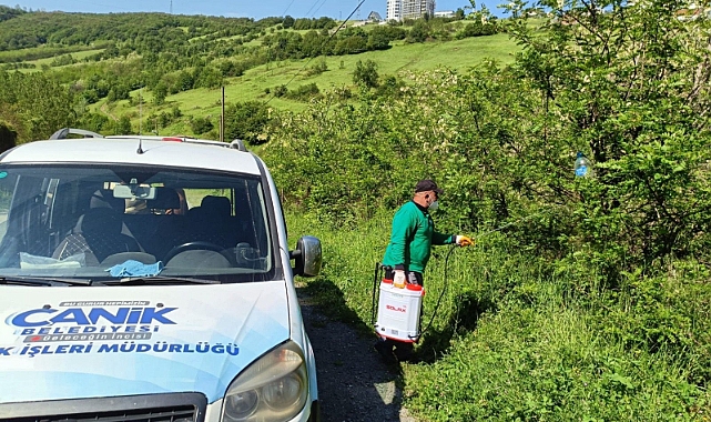 Canik Belediyesi, tarımsal üretime zarar veren kahverengi kokarca böceğine karşı feromon tuzak kurulum ve ilaçlama çalışmalarına yoğun bir şekilde devam ediyor.