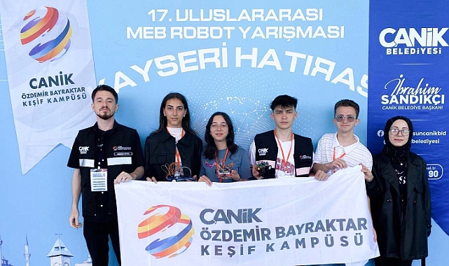 Kodlamalarını, tasarımlarını ve üretimlerini gerçekleştirdikleri robotlarla 17. Uluslararası MEB Robot Yarışması'nda ön elemeyi başarıyla tamamlayan Canik Özdemir Bayraktar Keşif Kampüsü öğrencileri, proje sunumlarıyla jüri üyelerini kendine hayran bıraktı. Yarışmada ilçeyi temsil eden Canik Özdemir Bayraktar Keşif Kampüsü öğrencilerini tebrik eden Canik Belediye Başkanı İbrahim Sandıkçı, "Canik Özdemir Bayraktar Keşif Kampüsü öğrencilerimiz bilgi ve yetenekleriyle başarılarına yenilerini eklemeye devam ediyor. Tasarımları ve üretimleri kendilerine ait olan eserlerle ulusal ve uluslararası yarışmalarda ilçemizi temsil etmeyi sürdürüyor. 17. Uluslararası MEB Robot Yarışması'nda birincilik için mücadele eden Canik Özdemir Bayraktar Keşif Kampüsü öğrencilerimiz Melih Şahin, Hatice Korkmaz, Semih Şahin ve Zehra Sude Yatağan'a başarılar diliyorum" şeklinde konuştu.