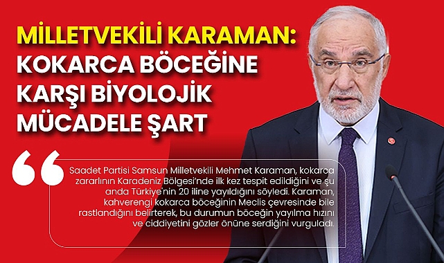 Saadet Partisi Samsun Milletvekili Mehmet Karaman, kahverengi kokarca böceğine karşı biyolojik mücadele yöntemlerinin yaygınlaştırılmasını istedi. Tarımda etkin çözümler çağrısı yaptı.