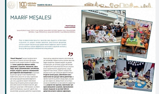 Bakanlığımız Strateji Geliştirme Başkanlığı tarafından hazırlanan "Maarifin Yüz Akı" dergisinin üçüncü sayısı, "Türkiye Yüzyılı Maarif Modeli Örnek ve İyi Uygulanmalar" temasıyla yayımlandı.