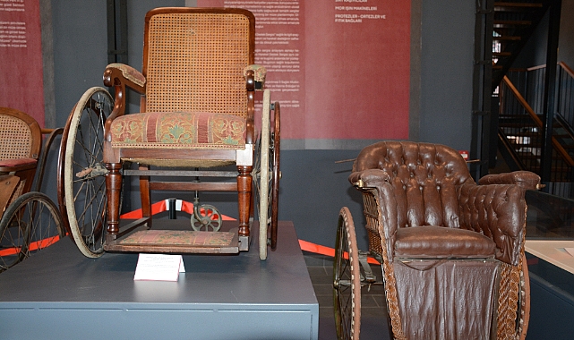 Müzede dikkat çeken eserlerin başında ise 1837-1901 yıllarında Orta Viktorya Döneminde yapılmış yaklaşık 200 yıllık tekerlekli sandalyeler geliyor. Yine ahşap, pirinç ve demirden yapılmış olan ve 1800’lü yıllarda kullanılan sedye de dikkat çekiyor.